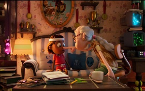 | Animirana znanstveno-fantastična poslastica! Nominacija za zlati globus in nagrado Evropske filmske akademije. Leta 2075 desetletna deklica Iris vidi, kako z neba pade skrivnostni deček, oblečen v mavrično obleko. To je Arco. Prihaja iz oddaljene in idilične prihodnosti, v kateri je mogoče potovati skozi čas. Iris ga sprejme k sebi in skuša storiti vse, kar je v njeni moči, da bi mu pomagala priti domov.